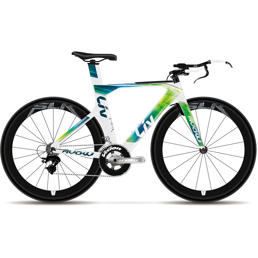 Combining the latest in aerodynamic and fit technology, the Avow Advanced series utilizes all aspects of the Liv 3F design philosophy and offers the unique combination of high-end performance and uncompromising fit. The Advanced-grade composite frame and AeroSystem Shaping Technology give this bike a smooth ride quality, responsiveness and aerodynamics to go the extra mile in any triathlon. Intended for all tri distances, the Avow Advanced is the perfect bike for the competitive triathlete looking to take her performance to the next level. Adjustability in the aerobar, stem and saddle help a triathlete find her ideal riding position. Dynamic graphics give the bike a distinctive look and deliver an overall polished package.